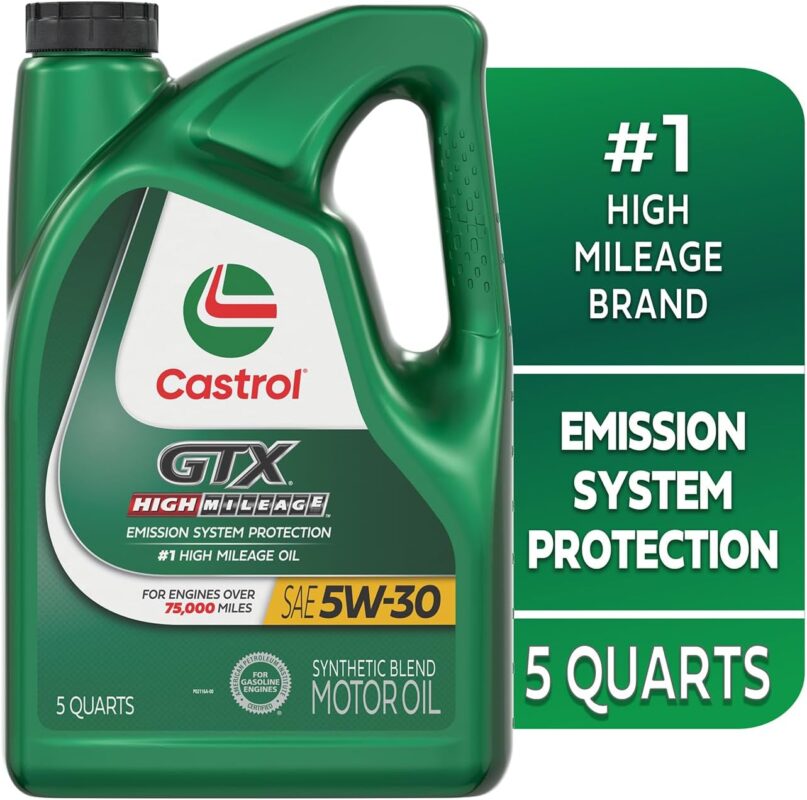 Castrol GTX High Mileage 5W-30 Synthetic Blend Motor Oil, 5 Quarts