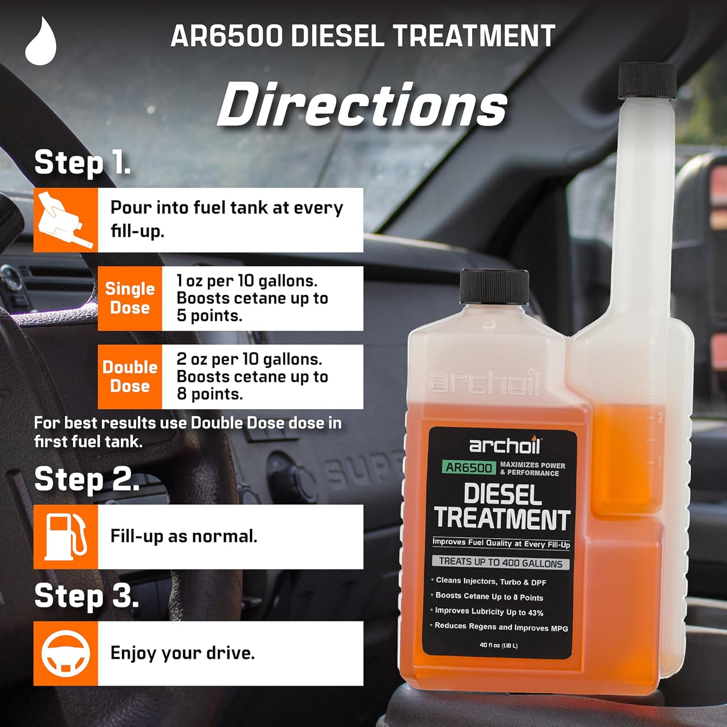 Archoil AR6500 Diesel Treatment (40 oz) Two Pack – Treats 800 Gallons – Additive for All Diesel Vehicles